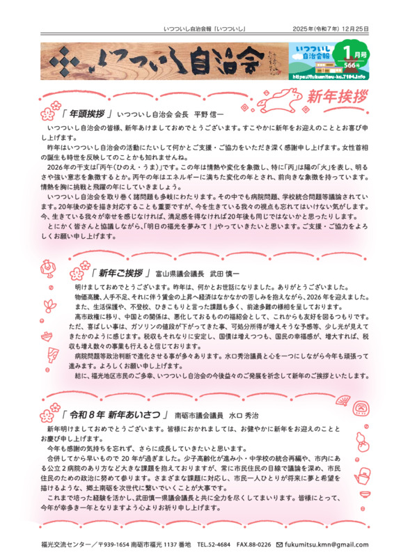 広報「いつついし」R8.1月号を発行しました! いつついし自治会
